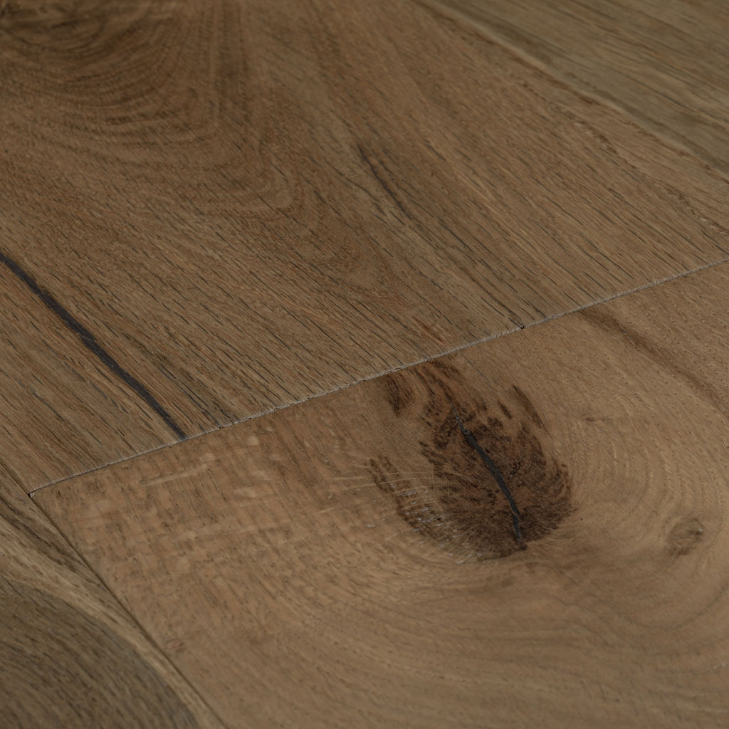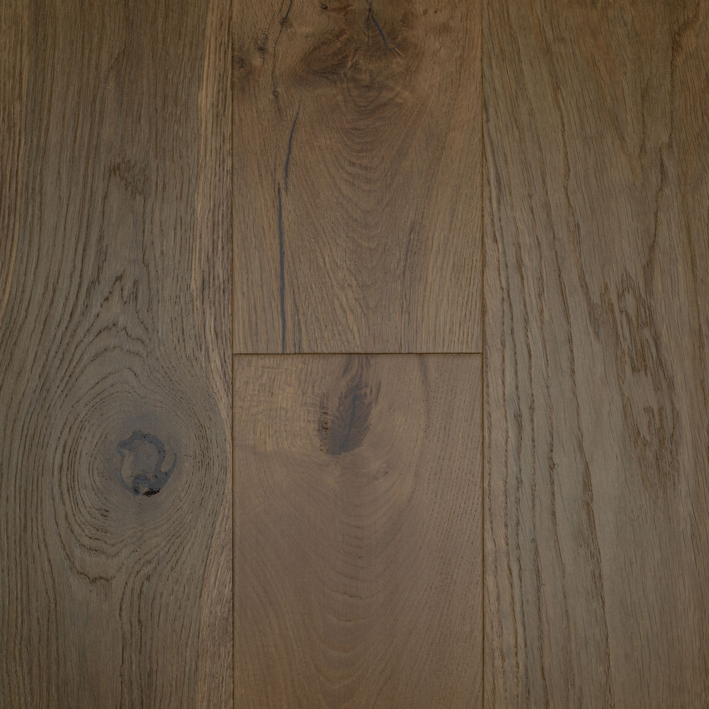 Our Montana Plank is a selection of unique and stunning floor boards reminiscent of those found in the most beautiful mountain homes– these planks are up to 75” long (average length is about 64") using stunning white oak hardwood with precision filled knots and cracks to give the floor a rustic elegance. Each 7.5” extra-wide plank is individually hand-selected to create a unique, timeworn appearance. Montana infuses history into modern spaces, with the added durability and engineering behind modern hardwood products. The surface is enhanced by a subtly hand scraped wire brushed texture, and an authentically hand-chiseled bevel. A low-gloss finish accentuates the wood’s timeless appeal. This gorgeous collection has a unique grain structure and a hand rubbed stain, giving it the look of a genuine foot-worn plank floor hewn centuries ago. Montana Plank features an incredible birch core for excellent stability, and is protected by a 35-year residential warranty. We do our best to represent our hardwood products accurately with our images, but as with any natural product our hardwood floors feature variations in colour and grain.
